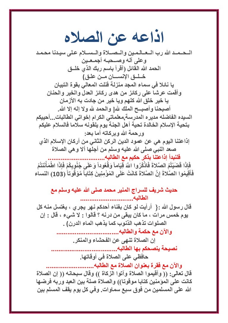 صدق الله العظيم يقول الرسول صلى الله عليه وسلم بلغوا عني ولو آية فمع. تقدم موسوعة اذاعة عن القران الكريم مميزة من خلال ذلك المقال حيث إن القرآن الكريم هو أفضل العلوم وأعظمها نزله الله سبحانه وتعالى على نبيه الكريم محمد صلى الله عليه وسلم في ليلة القدر بشهر رمضان وحفظه من كل تحريف وتغير من يوم نزوله إلى يوم ن بعث للحساب. نقدم لكم اذاعه مدرسيه عن القرآن الكريم كاملا تحرص العديد من المدارس بمختلف المراحل التعليمية على بدء اليوم الدراسي بالإذاعة المدرسية والتي يتعاون في تحضيرها وإلقائها طلبة المدارس بأنفسهم حتى يتم تعويدهم على تحمل.