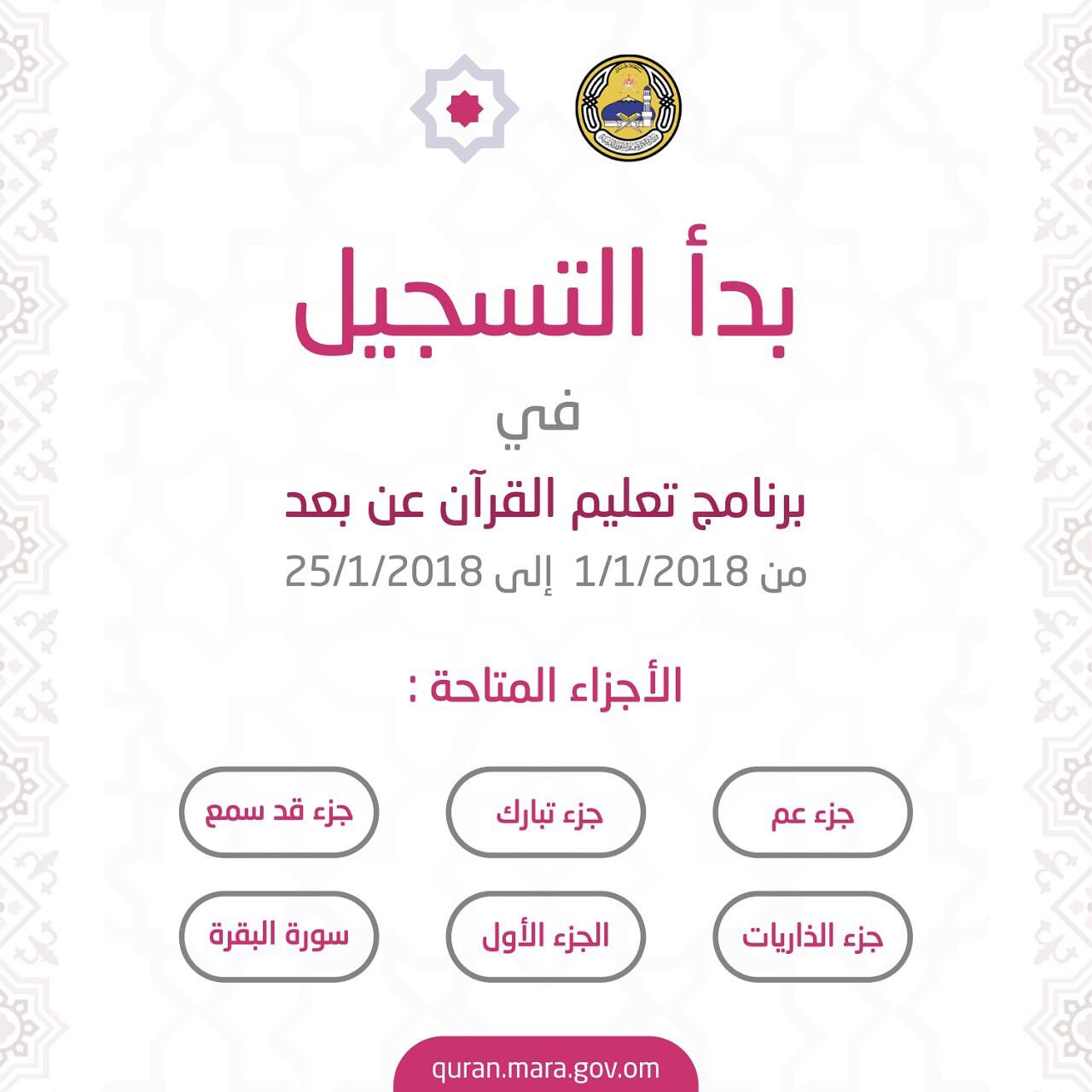 بحيث تم تصميم منصة قرآنية توفر بيئة إلكترونية قائمة على تقنيات المعلومات والاتصالات و التعليم التفاعلي لعلوم القرآن الكريم. عن البرنامج مشروع تعليم القرآن الكريم عن بعد تحت تنظيم وإشراف وزارة الأوقاف والشؤون الدينية بسلطنة عمان تساوقا مع التطور الحاصل في التعليم. لاستفساراتكم و اقتراحاتكم يرجى زيارة بوابة النظام الوطني لإدارة علاقات المتعاملين. برنامج التعليم عن بعد المتون العلمية.
